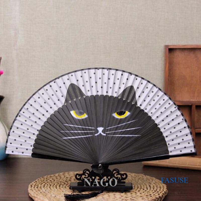 NAGO Cat Chinês Cartoon Seda Moda Japonesa Estilo Japonês Fãs Populares Lovely Kitty De Mão
