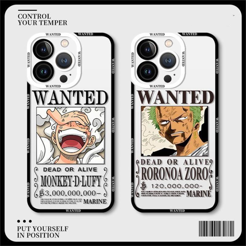Caixa Para iPhone 15 14 11 Plus Pro Max Luxo À Prova De Choque Anime Cartoon Dazzling Laser Gradient One Piece Luffy WANTED Matte IMD Estojo Telefone Com Design De Moda Suave