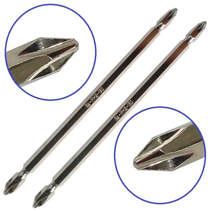 2 ponteiras bits extra longo phillips ponta PH2 x 150 mm com imã Ponta dupla e cromada para parafusadeiras e ou furadeiras