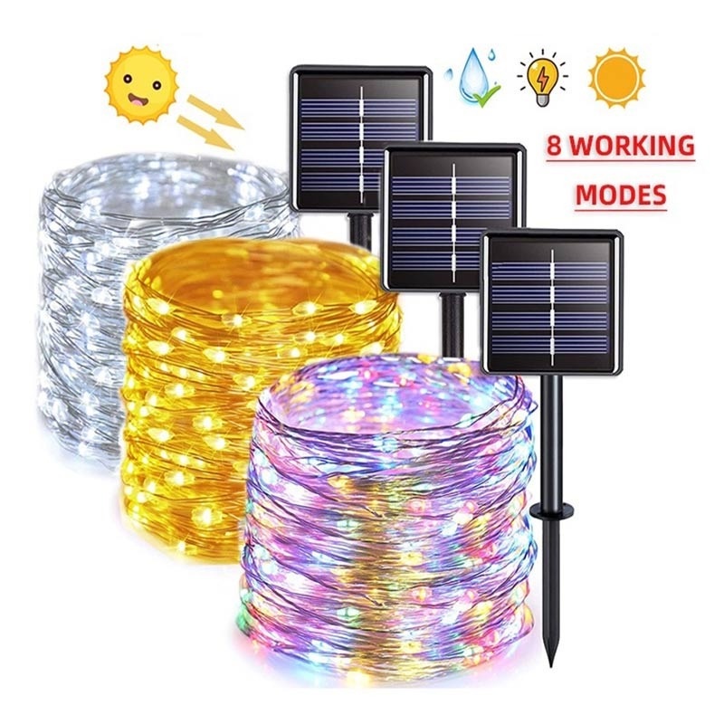 103M/52M/42M/32M/22M Luzes Solares De Fada De Cordas À Prova D'água 8 Modos Para Árvore De Jardim Christmas Raya Decor