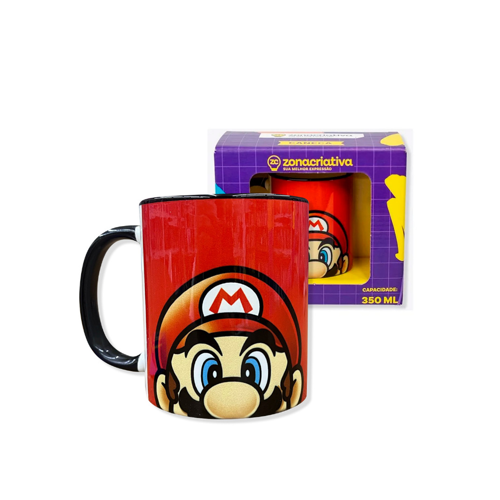 Caneca Mario Pop 350ml Zona Criativa Cerâmica Super Mario Coleção Geek