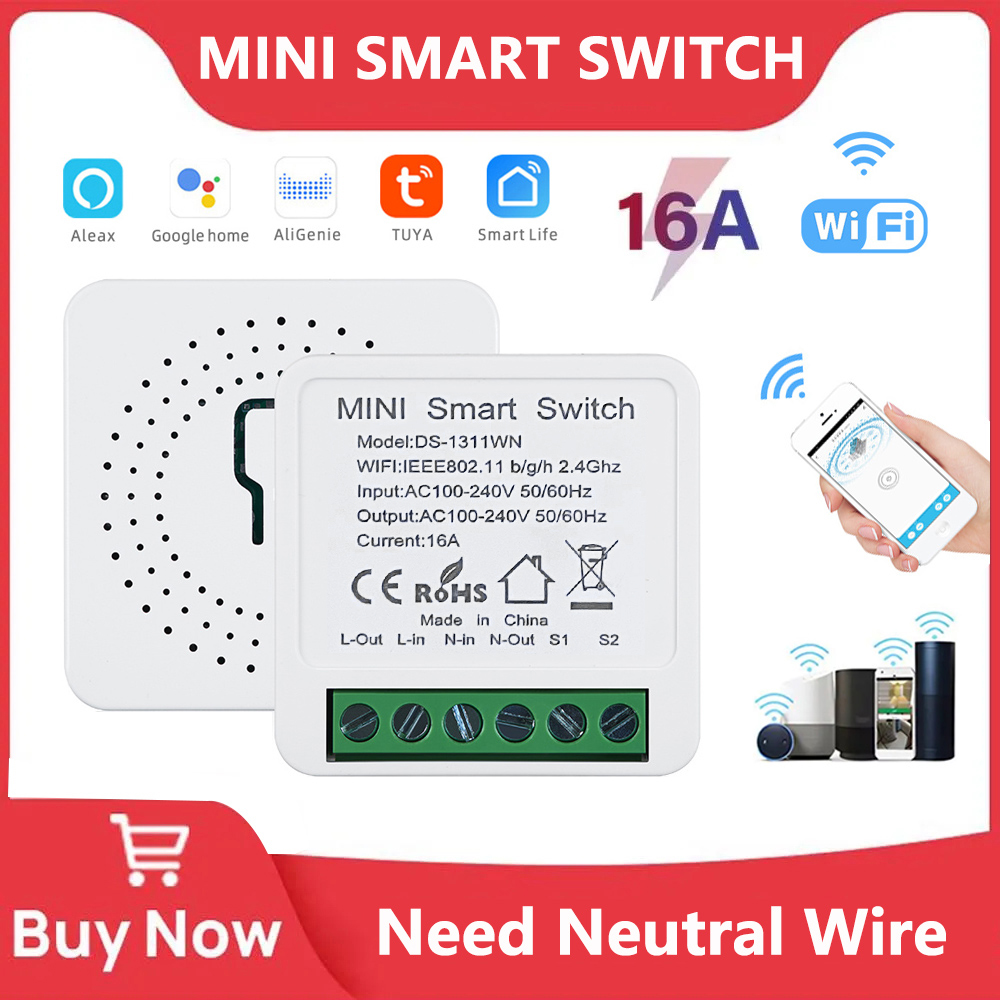 Mini Interruptores De Luz WiFi , Módulo DIY , Controle Bidirecional , Trabalho Com Tuya Smart Life , Alexa , Alice , Google Home , 16A