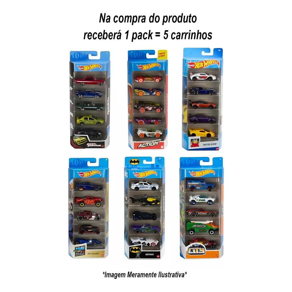Pack Hot Wheels Kit Pacote Com 5 Carrinhos Sortidos Mattel SEM OPÇÃO DE ESCOLHA