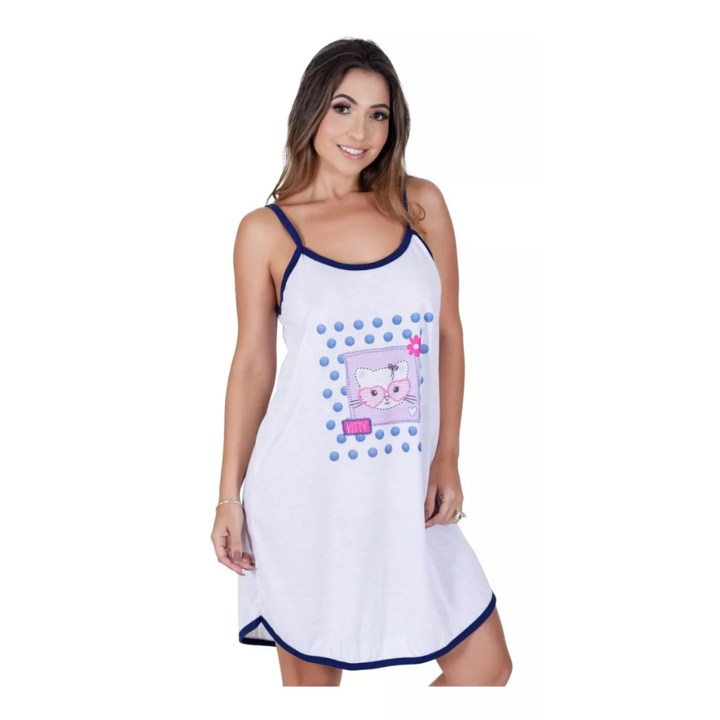 Camisola Feminina Em Malha Com Alcinha E Estampas Fofas
