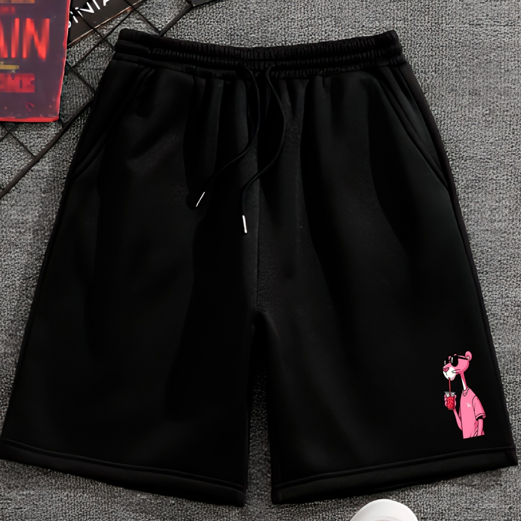Bermuda Moletom Pantera Cor de Rosa Flanelado Short Praia Calção Americano Pantera Cor de Rosa Tecido Premium