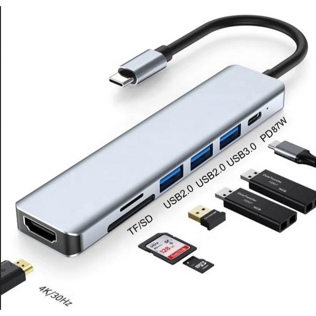 Hub Adaptador 7 Em 1 Tipo C Com Usb 3.0 Hdmi Micro Sd Tf