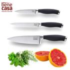 Kit Conjunto com 3 Facas em Inox Cabo Plástico Churrasco e Cozinha