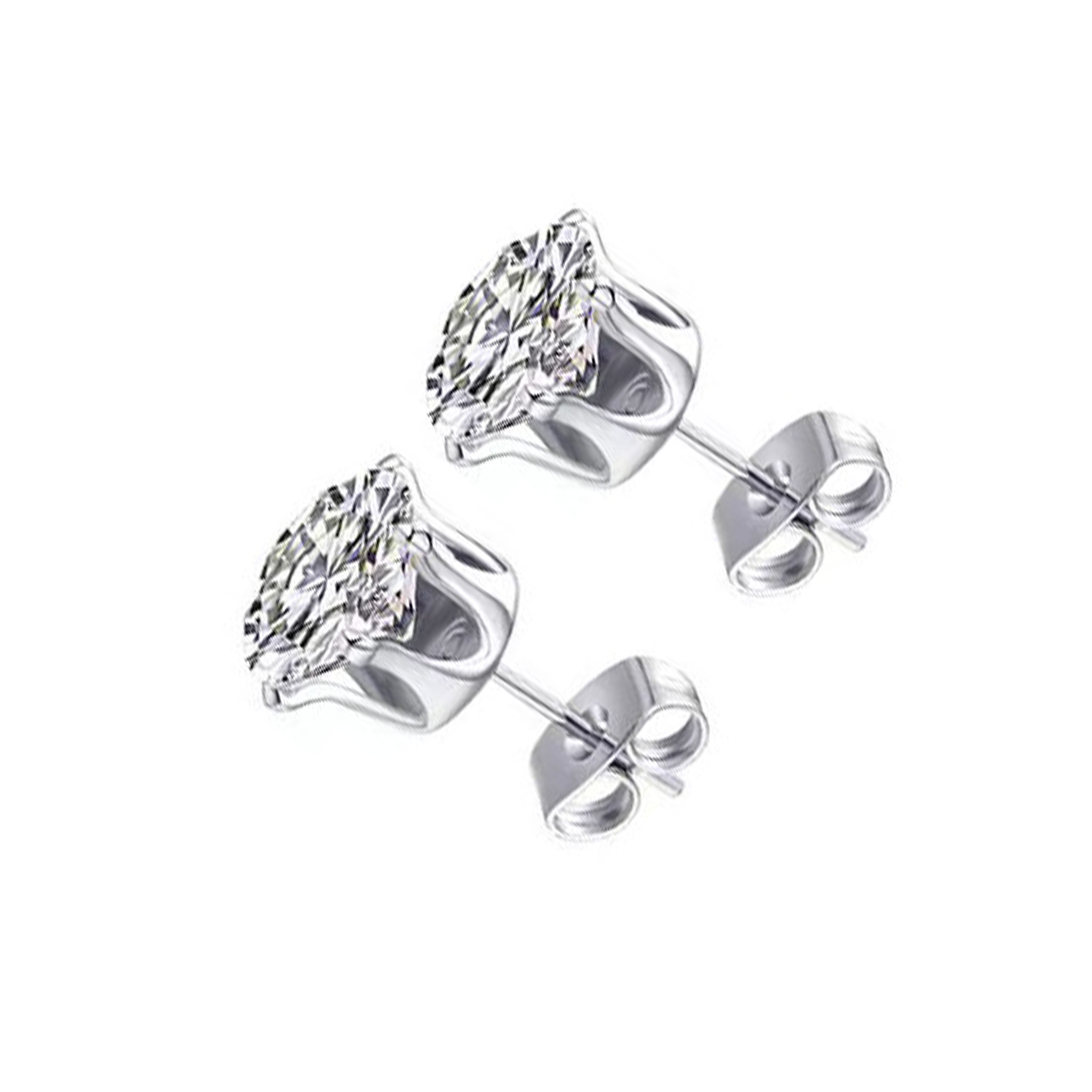 Um par de brincos de 316L de aço inoxidável hipoalergênico Zircon Crown Earrings, brincos de cartilagem de aço dourado rosa 18K, 3mm /4mm /5mm /6mm /7mm /8mm