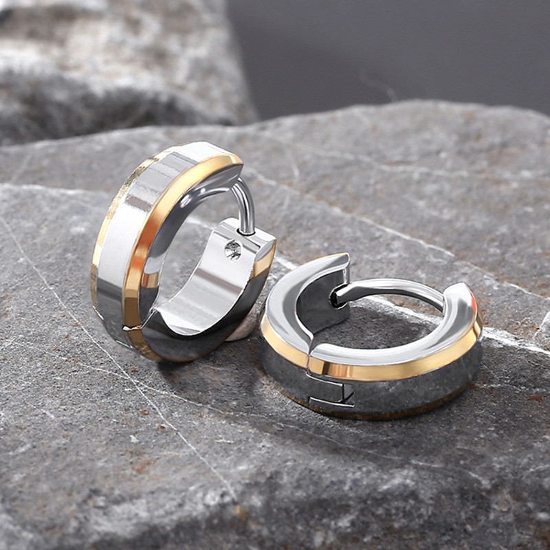FashionBoy Um Par De Moda Brincos De Aço Titânio Hip Hop Cavilha Geométricos Simples Círculo Jóias
