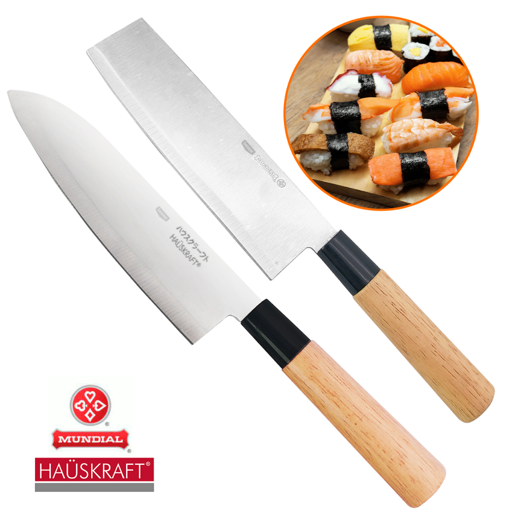 Kit Facas Japonesas Santoku+Cutelo Nakiri 7” Inox Mundial Para Corte de Peixe Legumes Verduras Carnes Culinária Oriental