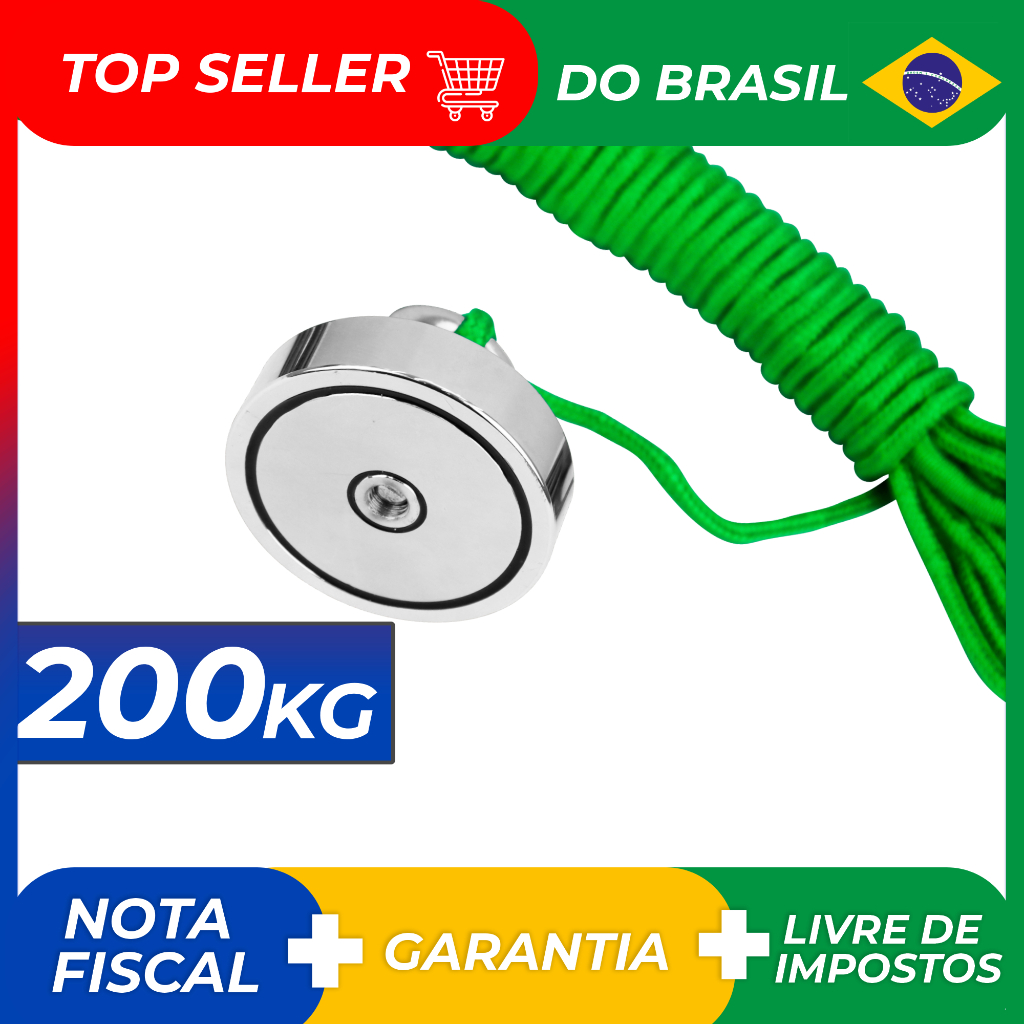 200KG Imã De Neodímio Pesca Magnetica Até 200 Kilos De Tração 10 Metros de corda