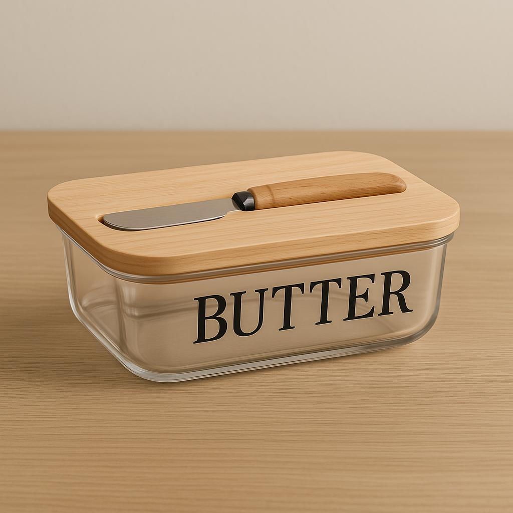 Manteigueira Butter Com Espátula e Tampa em Bambu Porta Manteiga Grande 17cm de Cristal