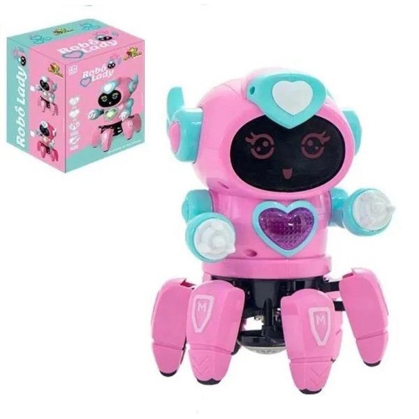 Robô Lady Face Digital Aranha Dançante Som Luz Rosa