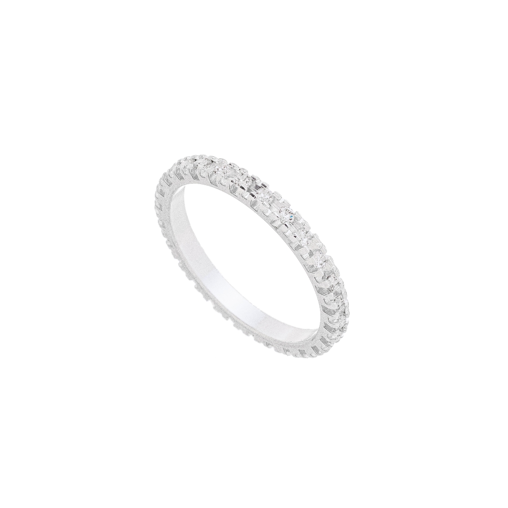 Aliança De Prata 925 Inteira Embutida Com Pedras De Zircônia