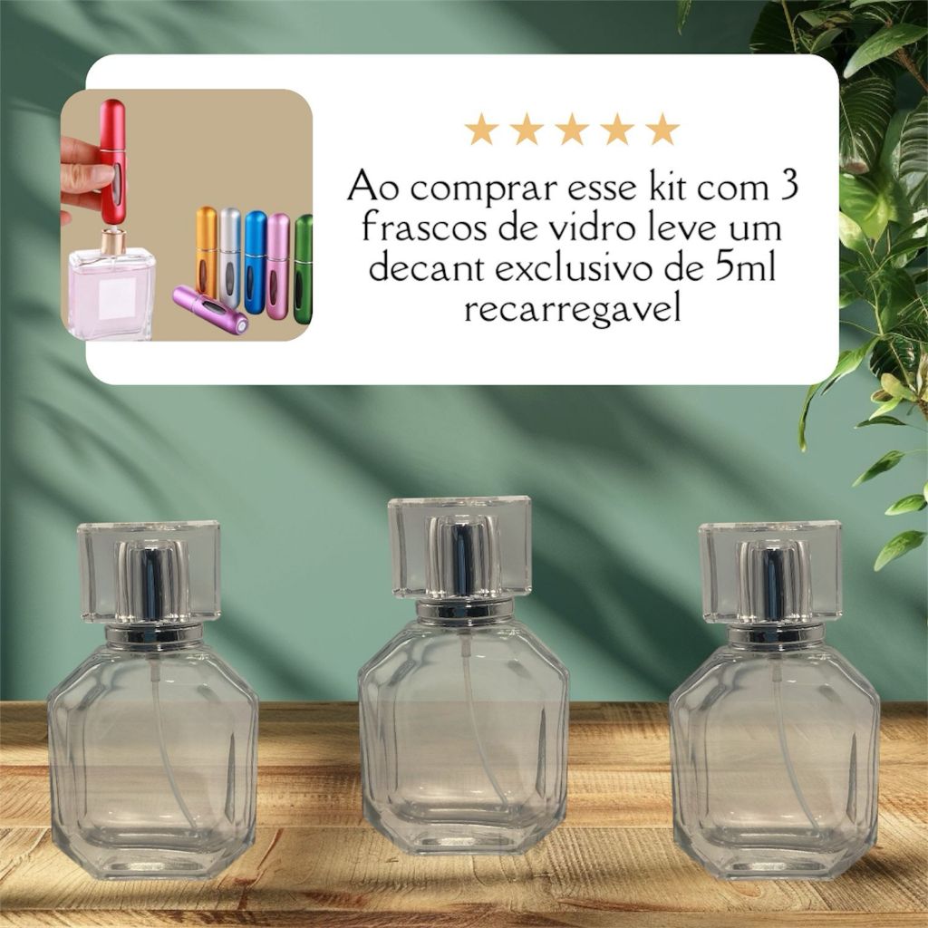 kit 3 Frasco de Vidro para Perfume 60ml Com Válvula Spray e Sobretampa Acrilico - Elegante e Prático Recarregável