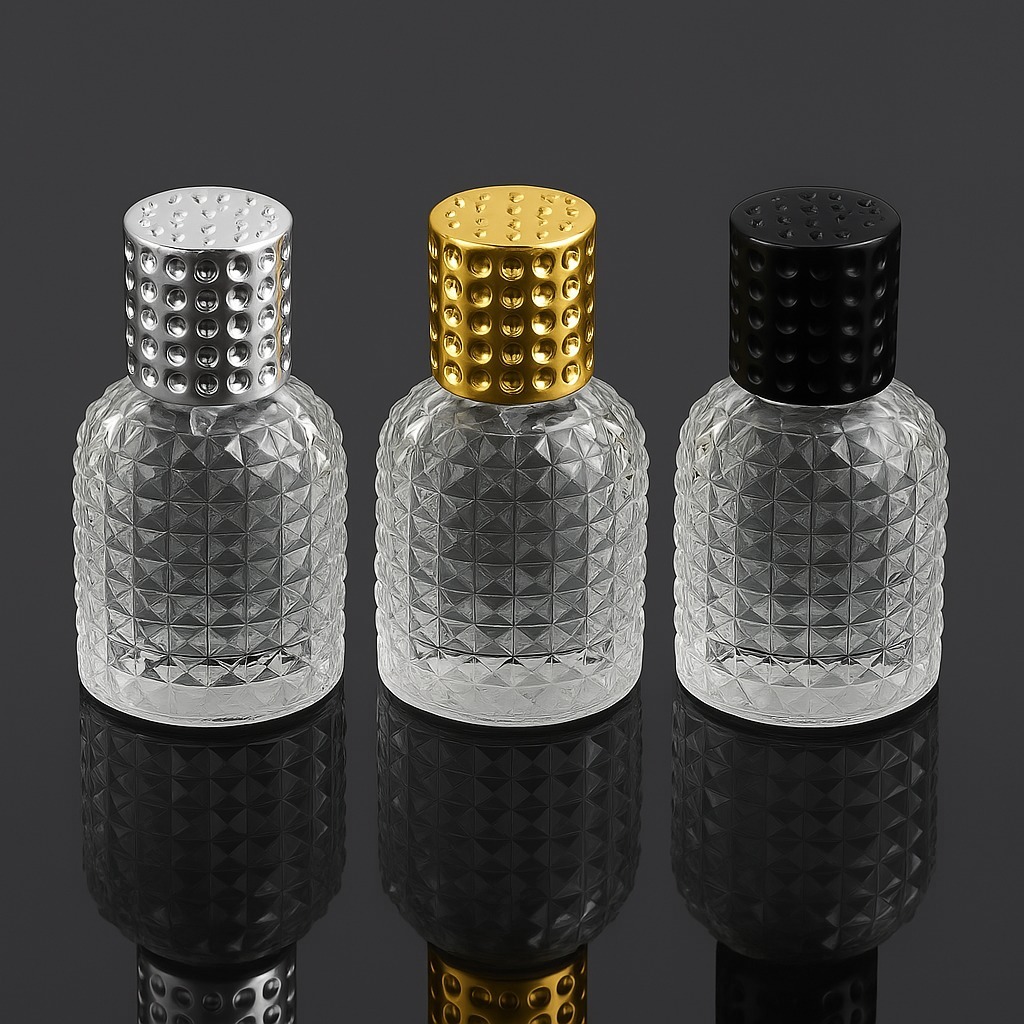 Kit Frasco de Perfume Valentin Cristal 30ml – Vidro Texturizado com Detalhe Central e Spray Recarregável