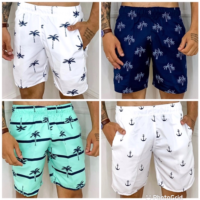 KIT COM 3 Bermuda Masculina Praia Short Tactel Grosso Estampado Shorts Masculino verão Qualidade Premium