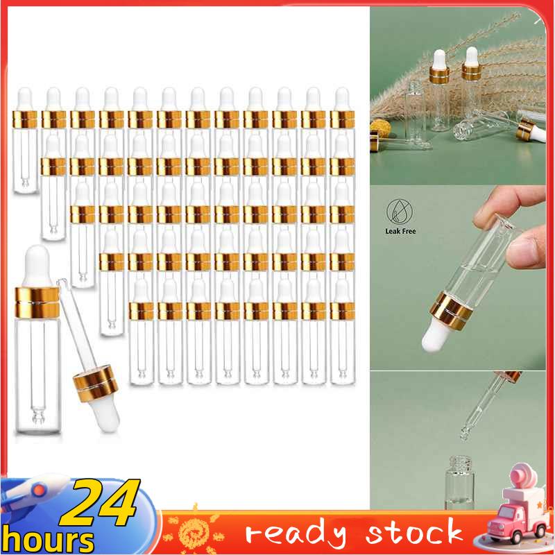 50 Frascos Com Conta-Gotas De Vidro Transparente , Mini Amostra Para Óleos Essenciais Líquido Cosmético Perfumado