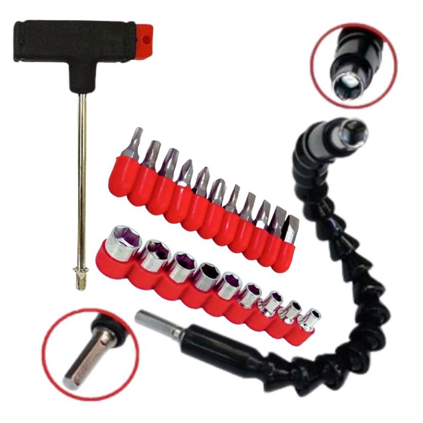 Kit 21 pcs Extensão/Eixo/Braço/Prolongado Flexivel 1/4 30cm + Chave T Bits em geral