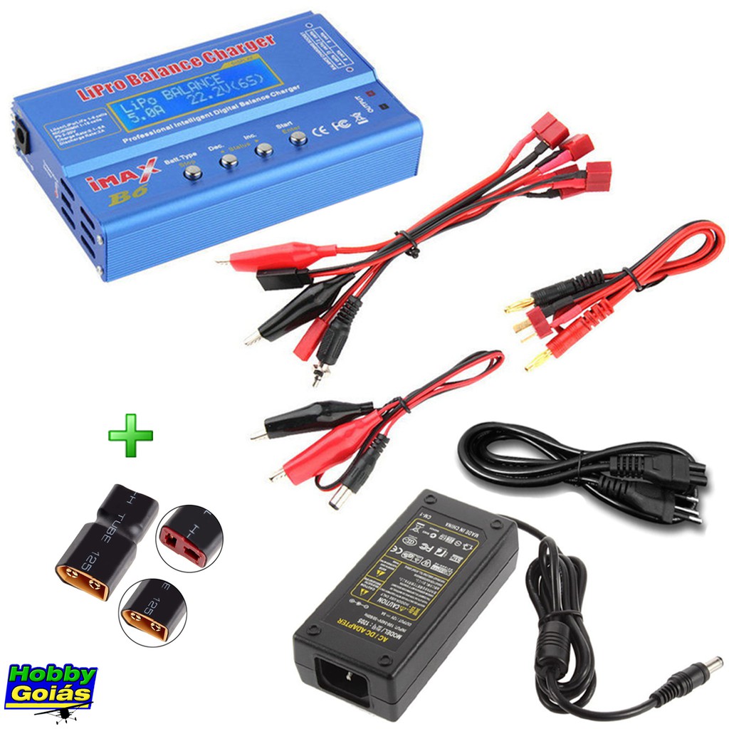 Carregador de Bateria Lipo Modelo Imax B6 80w 1s-6s + Fonte 12v + Adaptador XT60 - Hobbygoias