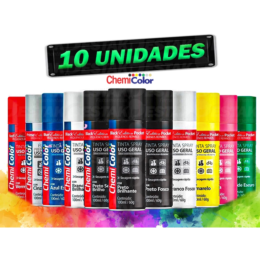 Kit Caixa de Tinta Spray 12 Unidades ChemiColor 100ml 60g Pocket Uso Geral / Metálica / Luminoso Diversas Cores