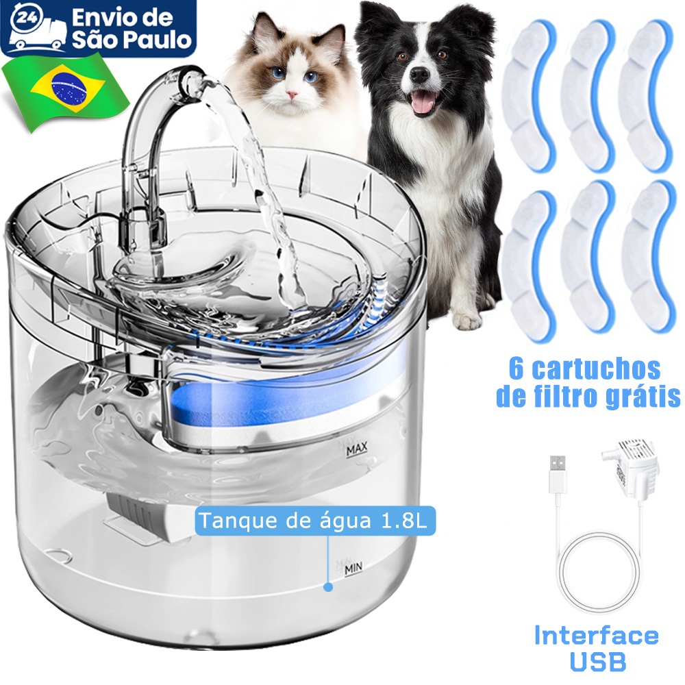 Fonte De Agua Para GatoCom Filtro Automático USB Elétrico Mudo Bebedouro Ppara Gatos Bebedor De Filtragem