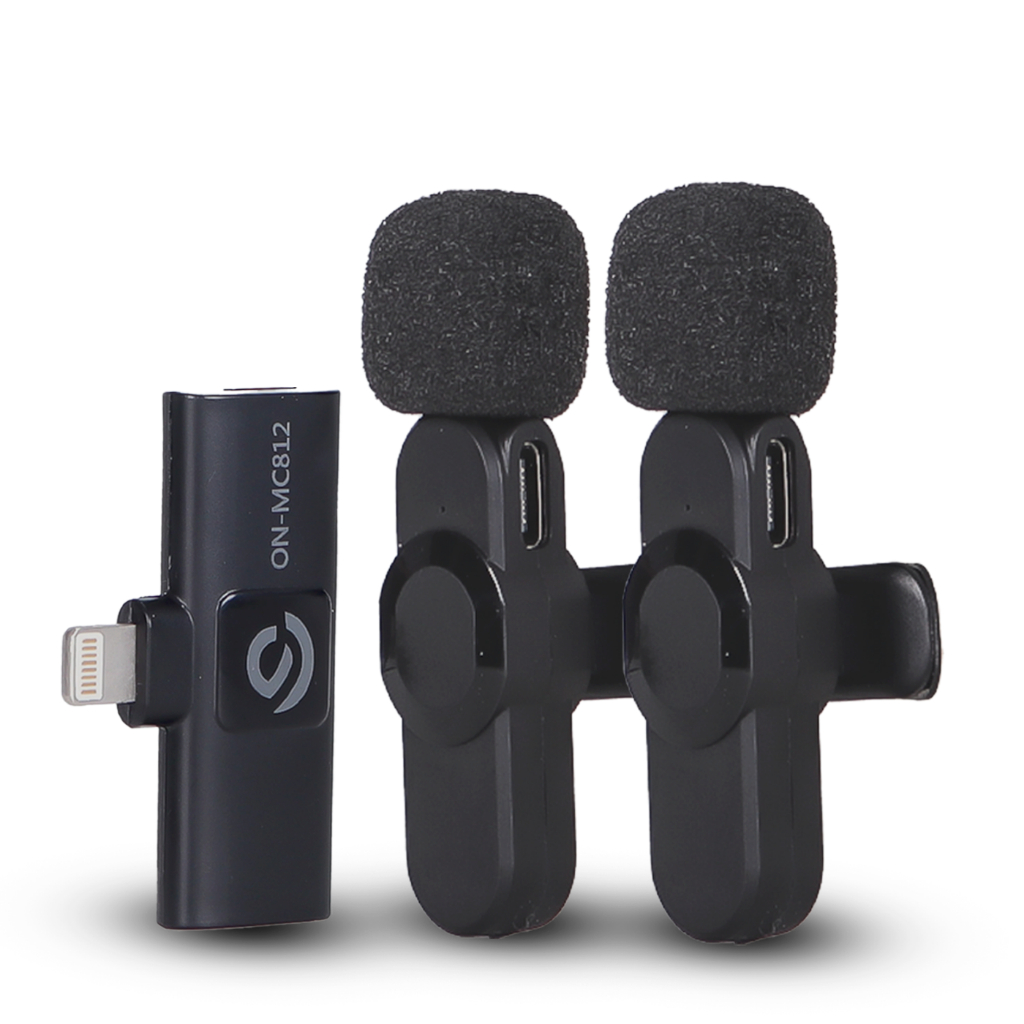 Kit 2 Microfone de Lapela Sem Fio Wireless Um Receptor Profissional Alcance 20 Metros Lightning IPhone IPad ios e Tipo C Android Presilha para Camisa Transmissão Reunião Palestra Gravação de Vídeo