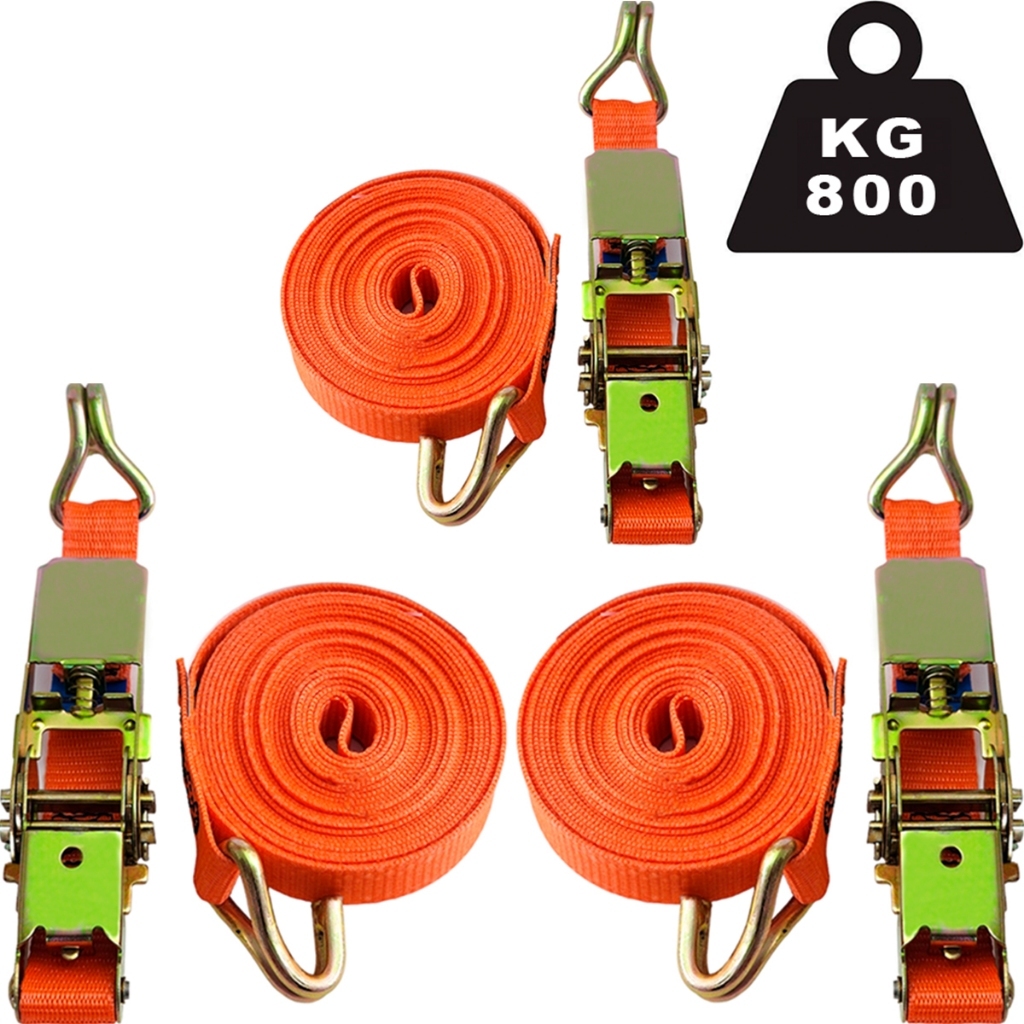 Kit 4 Cinta e catraca de segurança Amarração 100KG com fita de 4,5metros Rabicho Fixação de Carga 2,5cm para Veículos