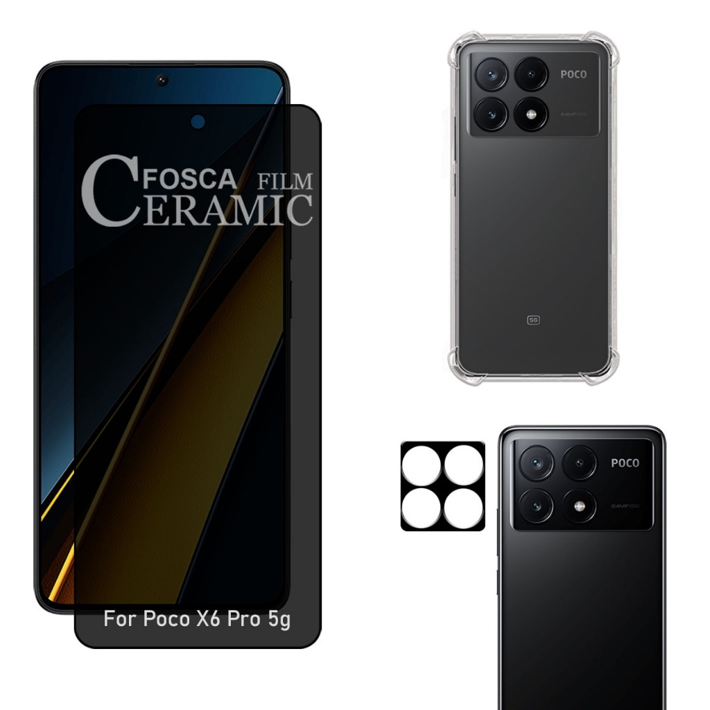 Kit Para Poco X6 Pro 5g | Película de Privacidade Fosca - Capa Anti Shock - Película da Câmera 3D