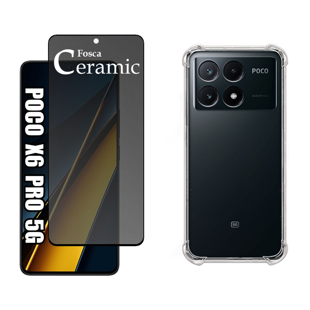 KIT Para Poco X6 Pro 5g Película Cerâmica Privacidade + Capa
