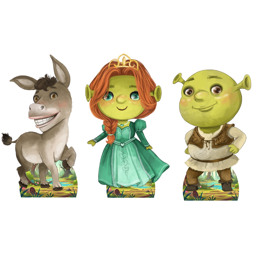 KIT DISPLAYS SHREK E TURMA AQUARELA - 3 DE 55CM - FESTA E DECORAÇÃO