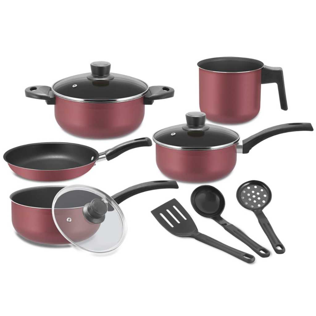 Conjunto Jogo 9 Peças Teflon Antiaderente Tampa De Vidro Panela Pressão