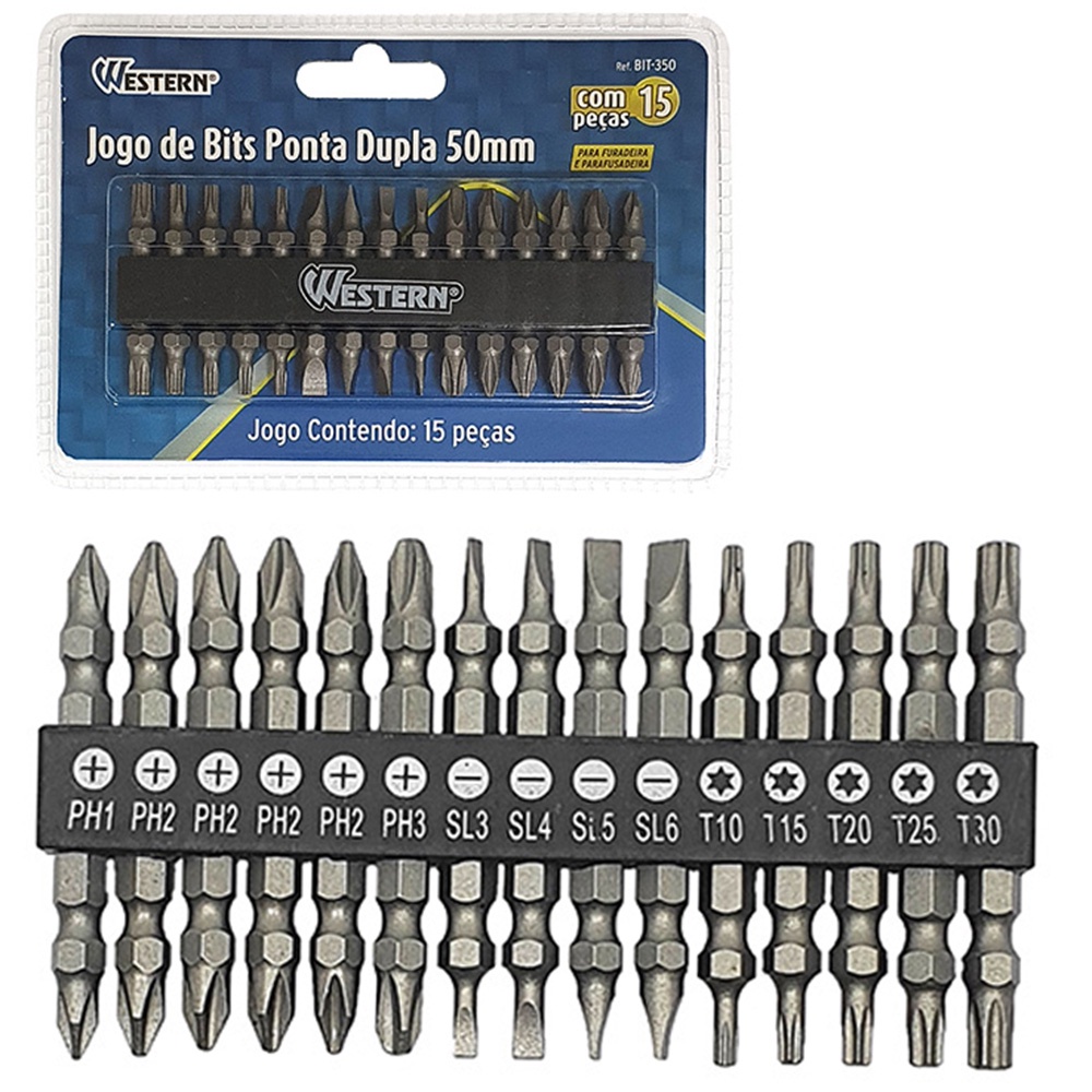 Jogo De Bits Para Parafusadeira Com 15 Pontas Dupla 50mm
