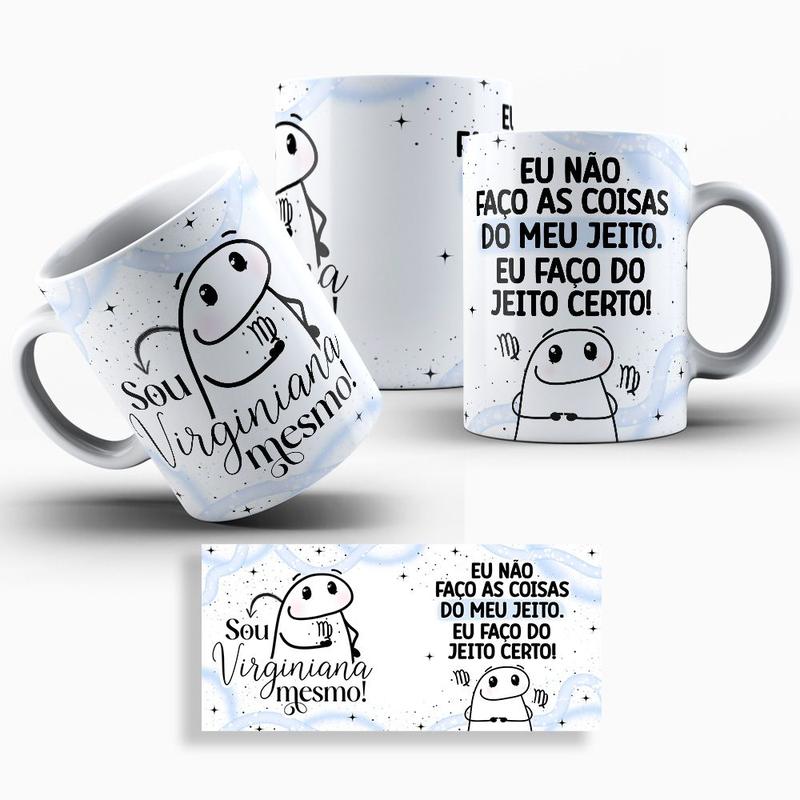 Caneca de Porcelana Personalizada Signos Signo Flork Virgem Leão Libra Aquário Escorpião Aries Touro Gemeos Cancer