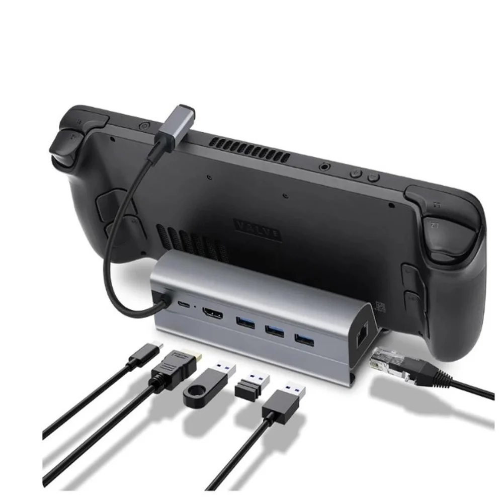 Base Dock Steam Deck Hub USB-C 7 em 1 HDMI USB RJ45 Gigabit