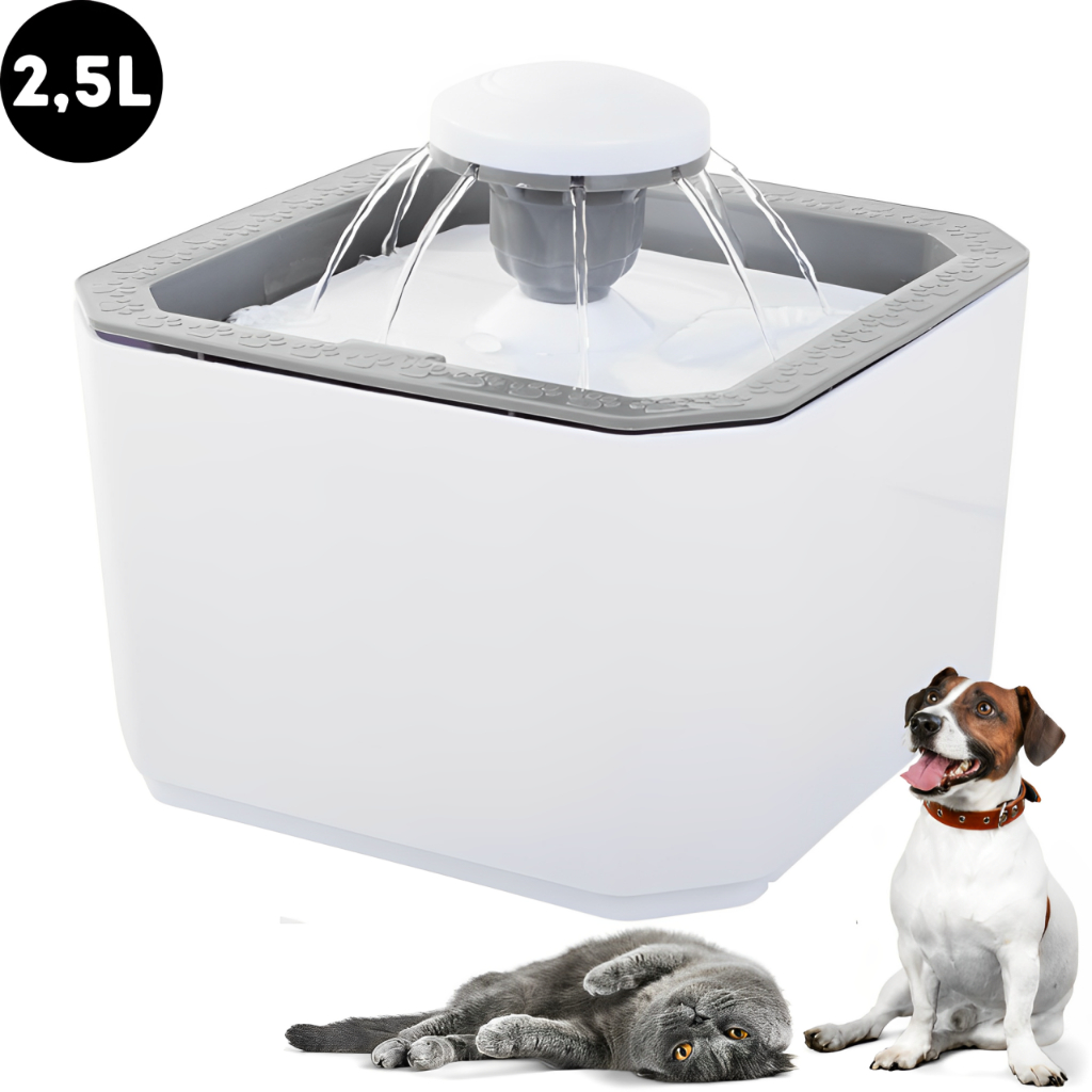 Fonte De Água Bebedouro Gatos Cães 2.5L Filtro Elétrico Automático Para Pet Cachorro Gato COIBEU