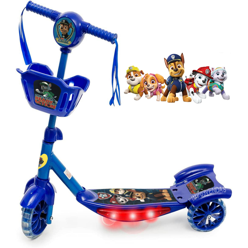 Patinete Patrulha Canina Meninos Meninas Patinete Infantil Musical 3 Rodas Cesta E Luzes Até 35kg