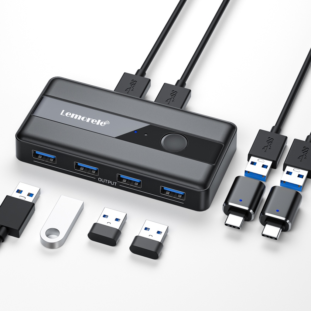 Lemorele USB Switch - 2 em 4 saídas, KVM Switch USB 3.0 para 2 PCs com 2 cabos USB 3.0 A para A para teclado, mouse, impressora, scanner, pen drive e mais