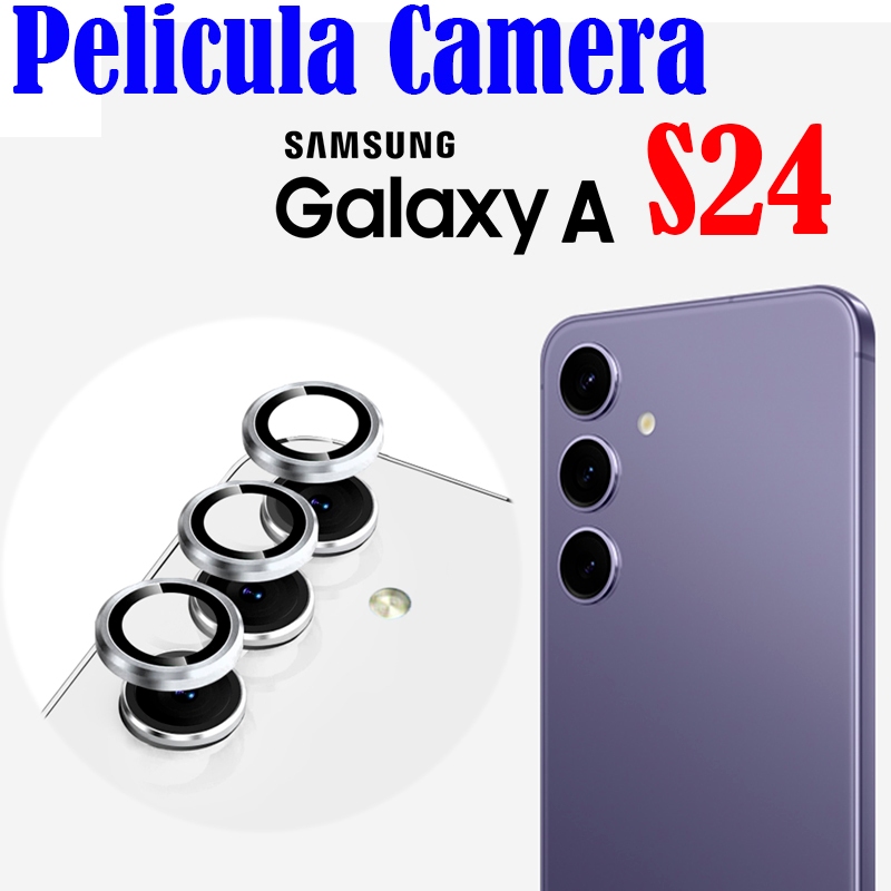 KIT(3 Pcs) Película De Câmera P/Galaxy S24/S24 FE/S24 PLUS Protetor De Lente Com Anel De Metal Vidro Temperado