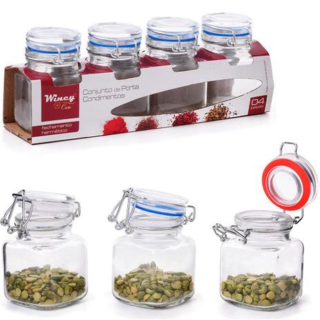 Porta Condimento De Vidro Com Tampa Hermetica E Fecho 4 Pecas 100ml - Cozinha - Tempero