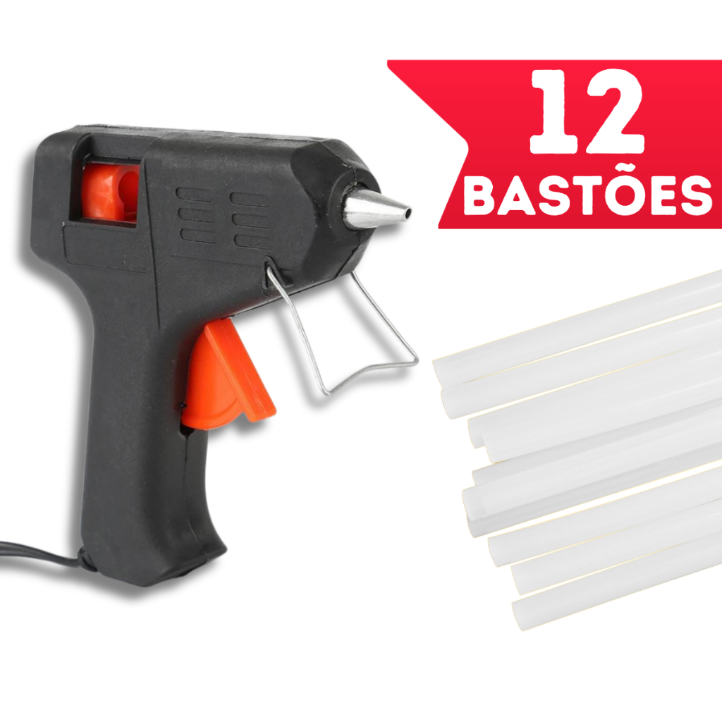 Pistola de Cola Quente com 20 ou 10 Bastões 20W Bivolt 110v e 220v Bastão Fino