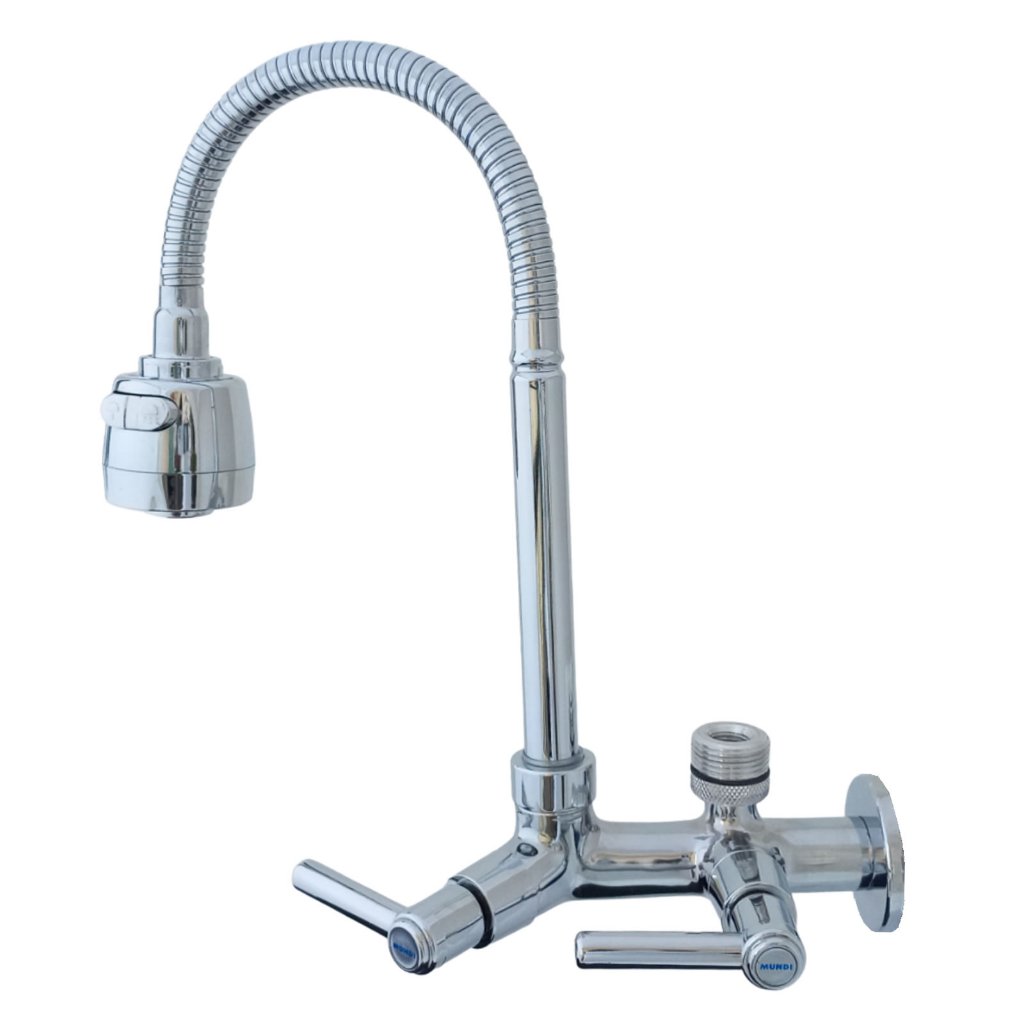 Torneira Com Saída Para Maquina De Lavar Louça E Roupa Dois Jatos Cromado Flexível Parede