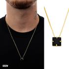 Corrente 1mm Veneziana 60cm e Pingente de Pedra Preta Banhado a Ouro 18k