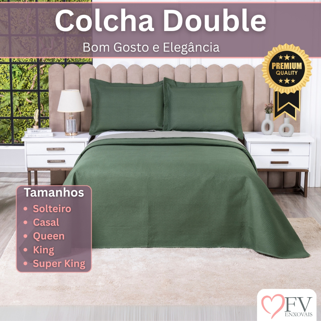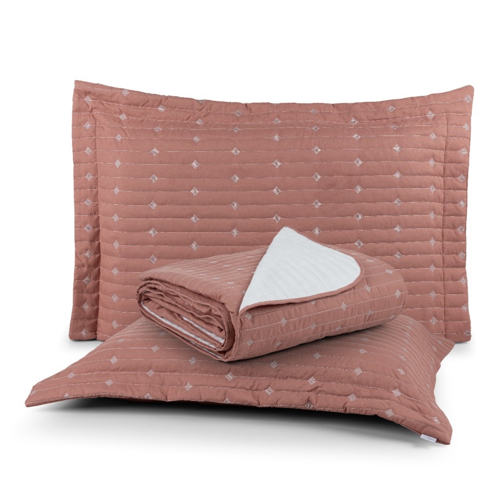 Kit Cobre Leito Colcha Casal 3 Pecas Dupla Face Micro Percal 150 Fios Matelado Pastilhas