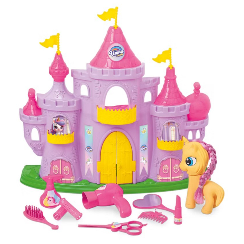 Castelo Unika Princesa Com Unicórnio, Móveis e Acessórios - Brinquedo Infantil Rosa Menina Casinha
