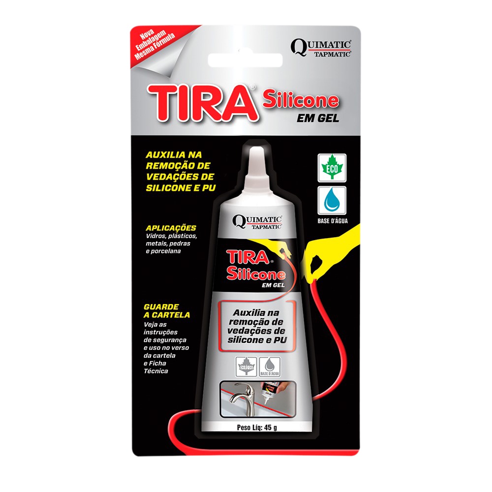 Tira Silicone e PU removedor poliuretano em vidros plástico e metais em gel á base d'água de 45g Quimatic Tapmatic