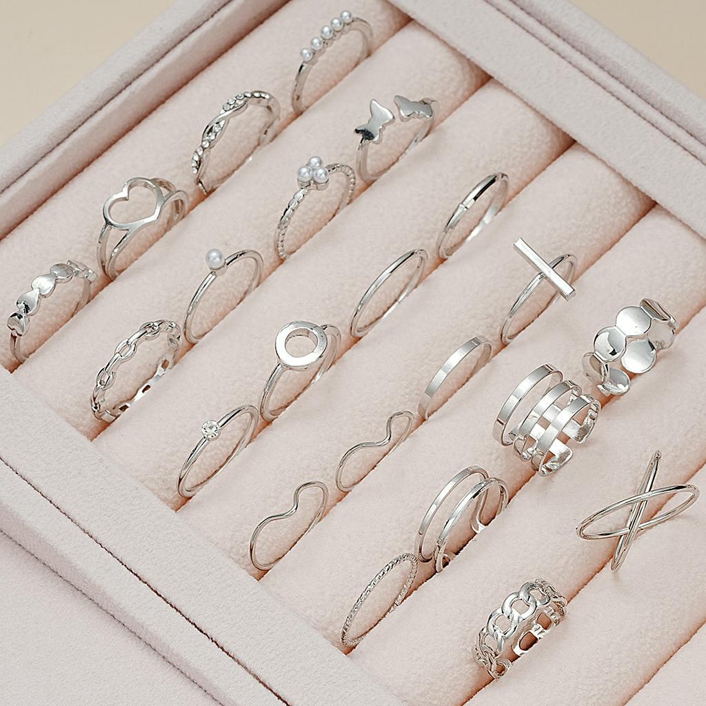 222 Pcs Conjunto Simples De Anéis De Prata Pérola Para Jóias Unisexo