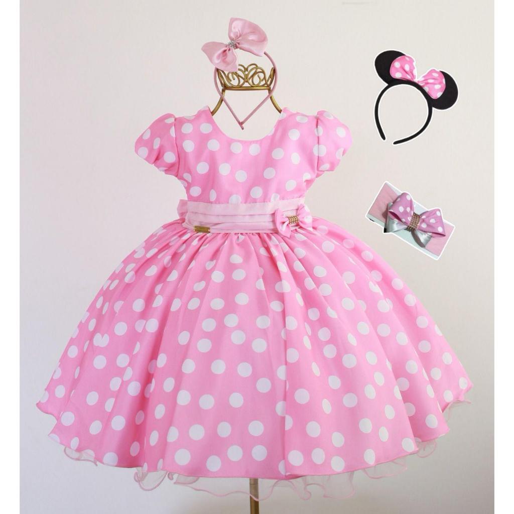 Vestido Minnie Rosa Infantil Tema Festa Princesa Poá Bolinha Branca Promoção