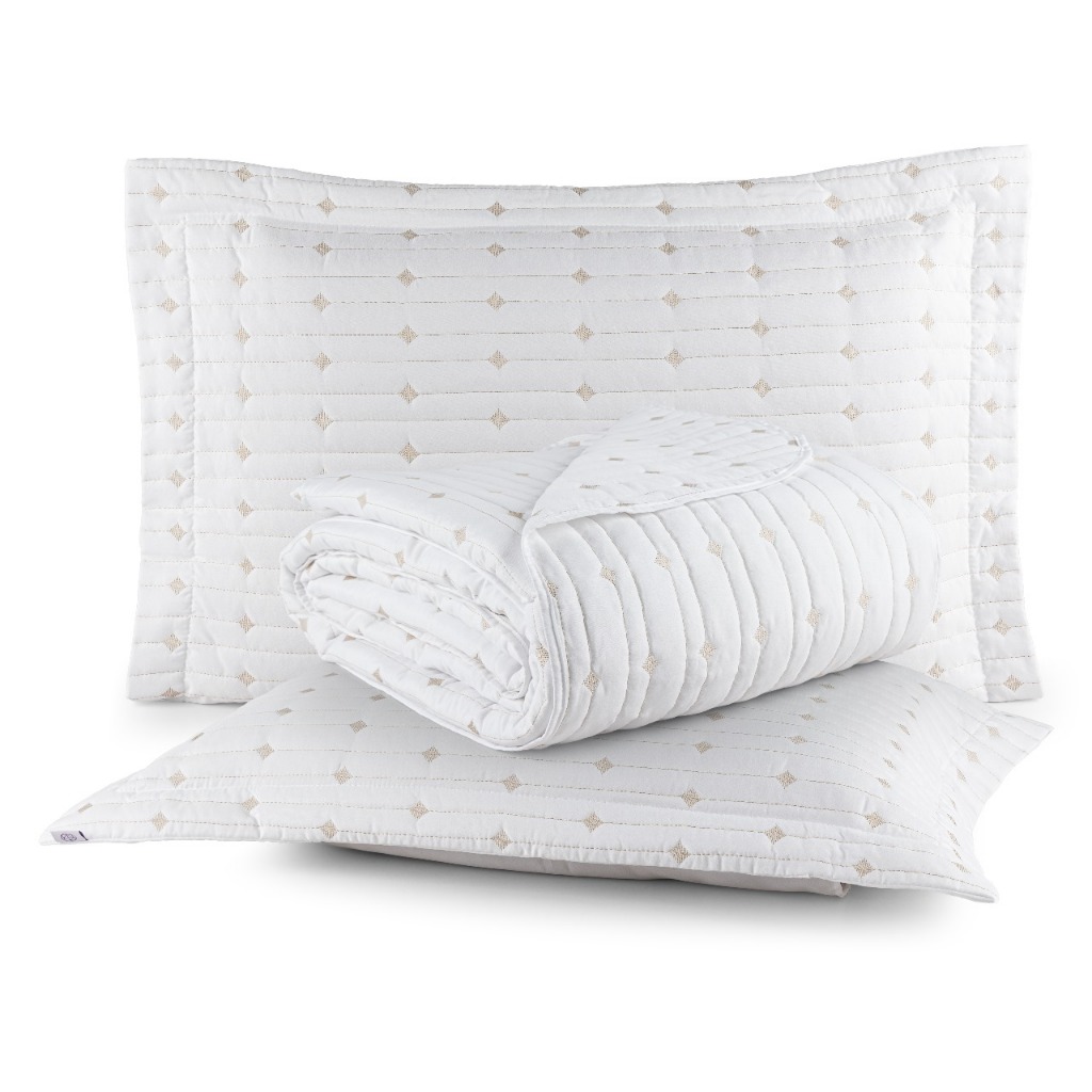Kit Cobre Leito Colcha Queen 3 pecas Dupla Face Micro Percal 150 Fios Matelado Pastilhas