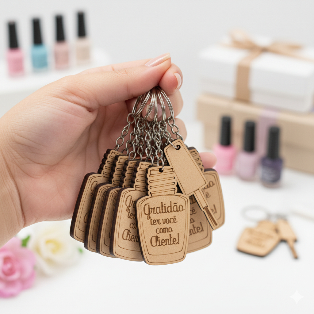 Chaveiro MDF Personalizado Esmalte Brinde para Cliente Salão de Beleza, Esmalteria, Manicure Gratidão
